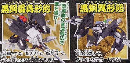 武者0传中登场的ブライト解除封印后就变成了斧雷丸,同样还可以变形为黑钢雷鸟形态。铠甲也可以单独变形为黑钢翼形态。